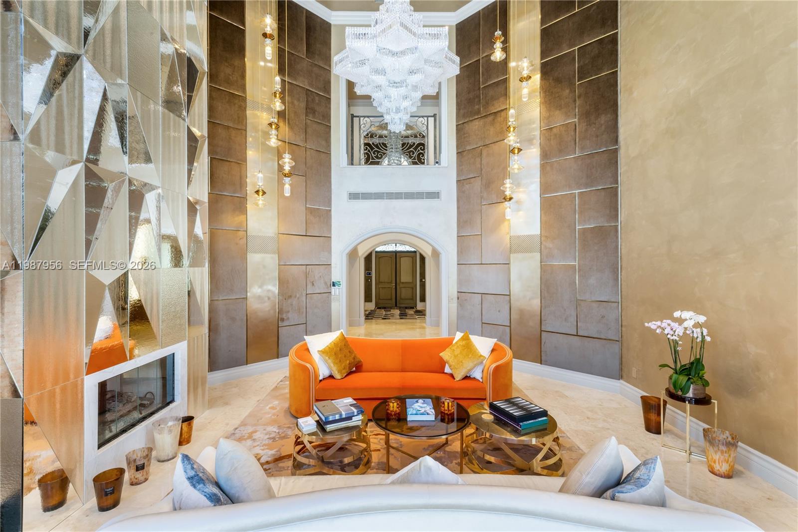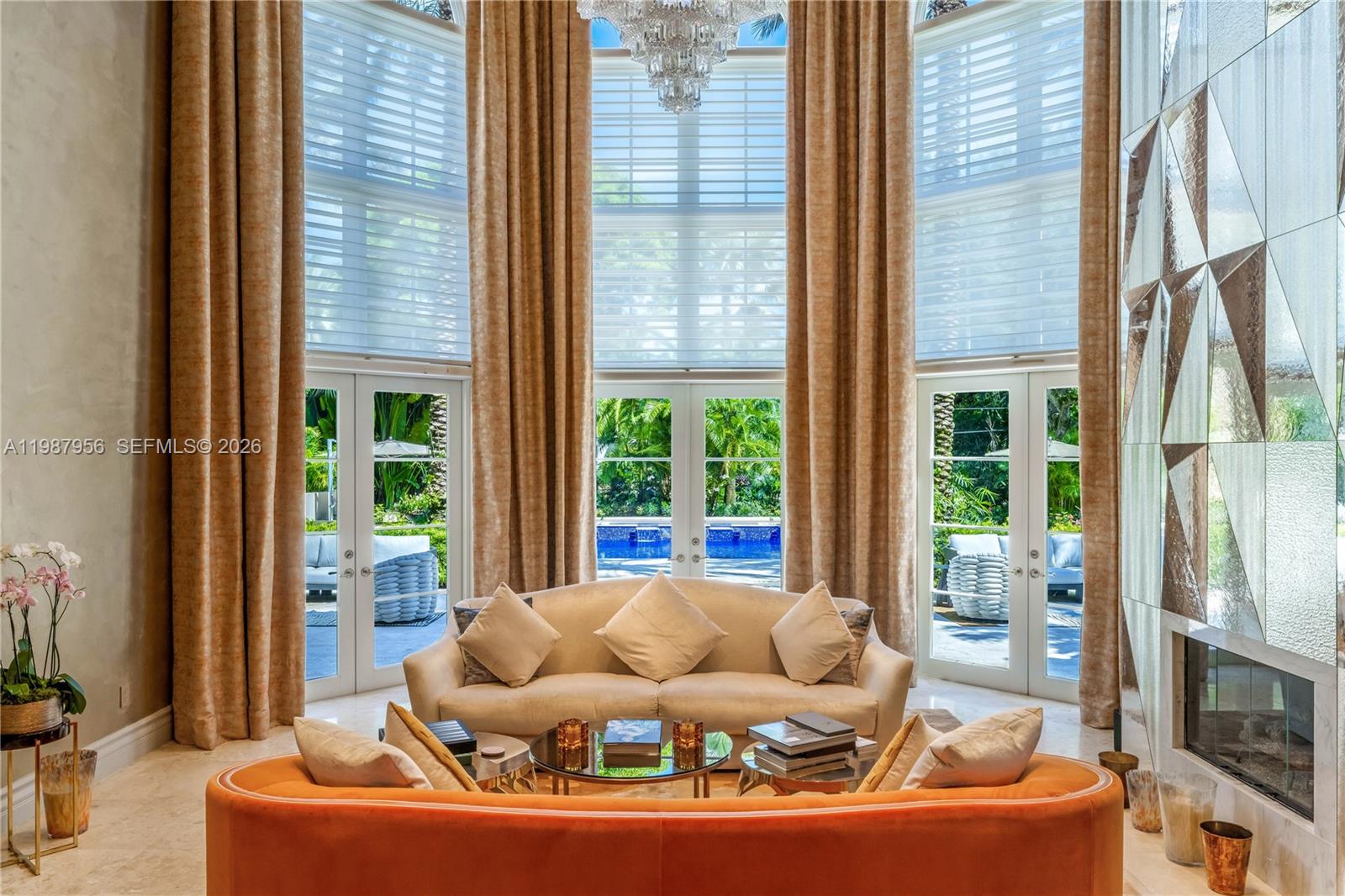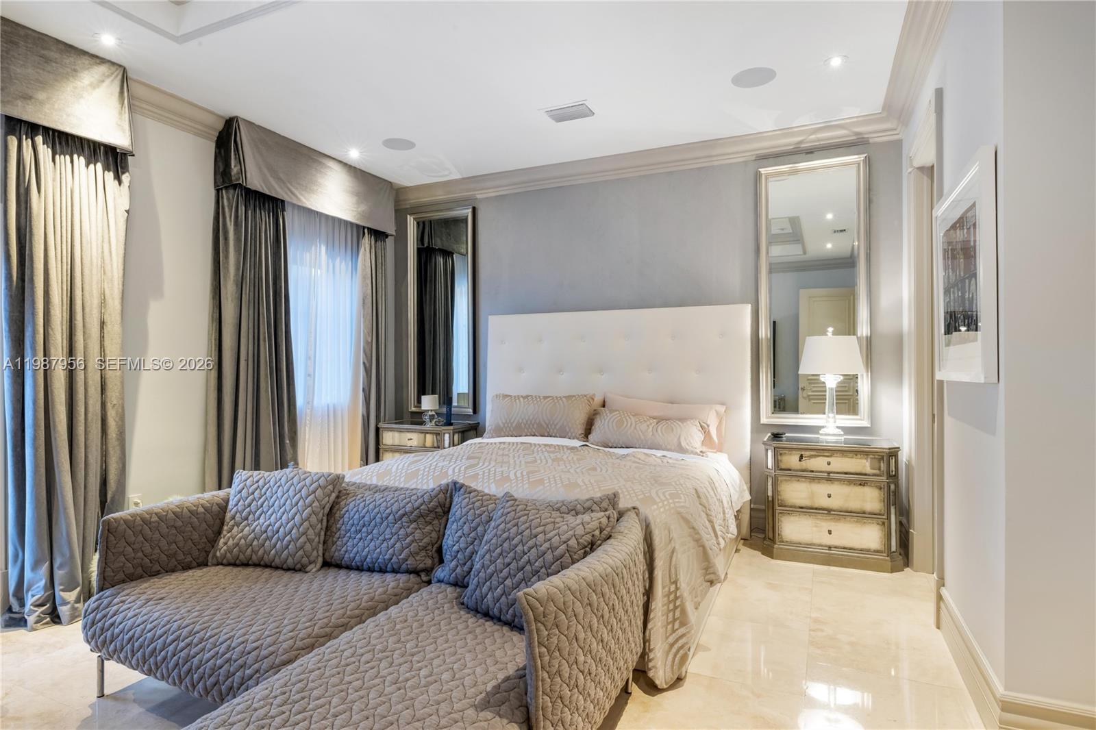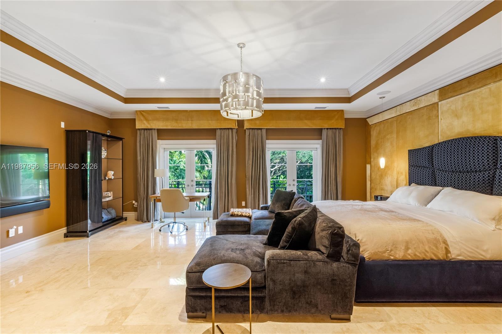An architectural statement within the prestigious guard-gated enclave of Snapper Creek Lakes, this extraordinary residence blends modern design with refined European influence. Designed by Monaco-based interior designer Milena Sinolovich, the home spans expansive living spaces with marble floors, custom millwork, and curated finishes throughout. The thoughtfully designed layout features 8 bedrooms; 2 downstairs and 6 upstairs, each with en-suite baths. A large private primary suite with dual spa-inspired bathrooms, Jacuzzi tub, and bespoke details. Entertain with ease in the formal living and dining rooms, a custom wine cellar and bar, theater room, and a chef's kitchen equipped with Miele, Wolf, and Sub-Zero appliances. Outdoors, a heated swimming pool, summer kitchen, and lush landscaping with 28 palm trees create a private resort setting. Complete with elevator, smart home technology, impact glass, generator, and 3-car garage, this is a rare offering of scale, design, and sophistication.