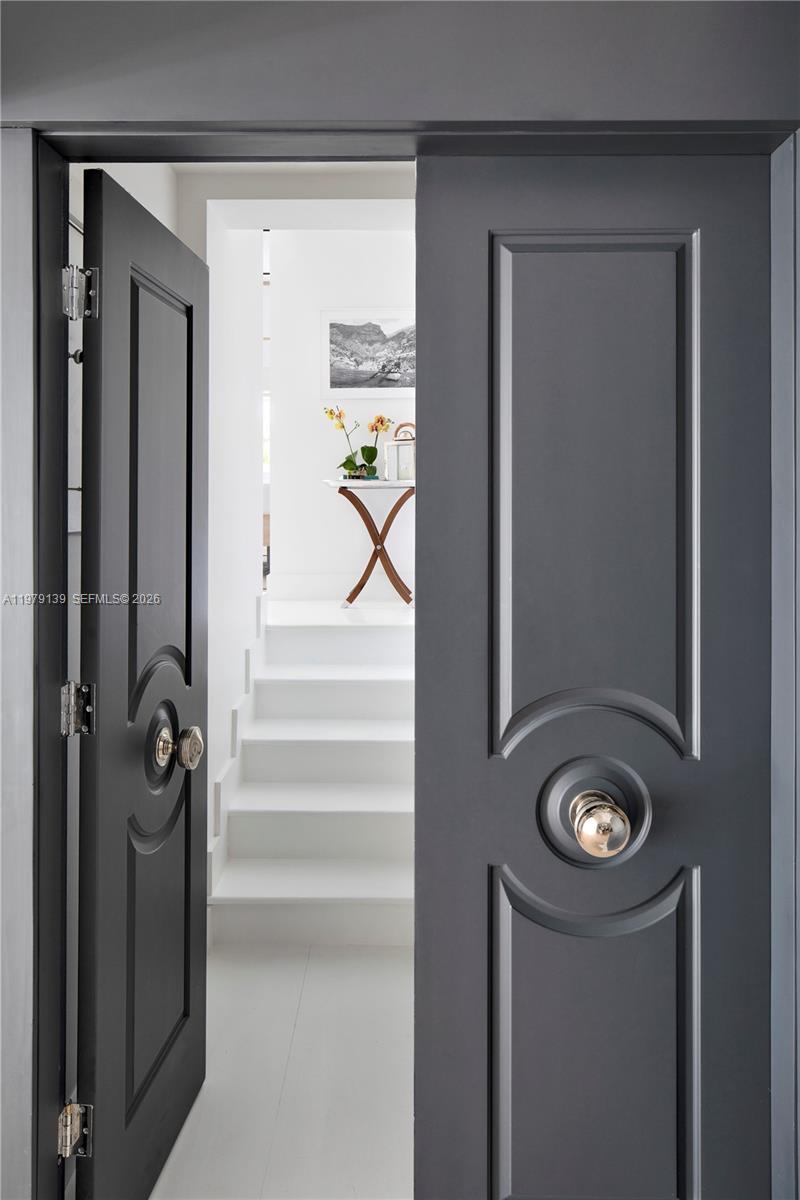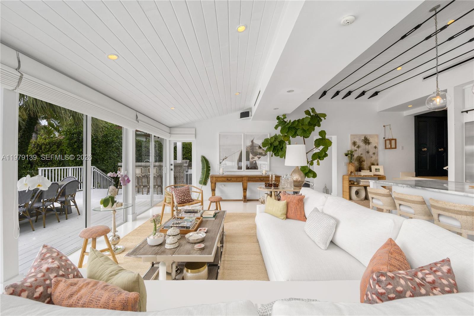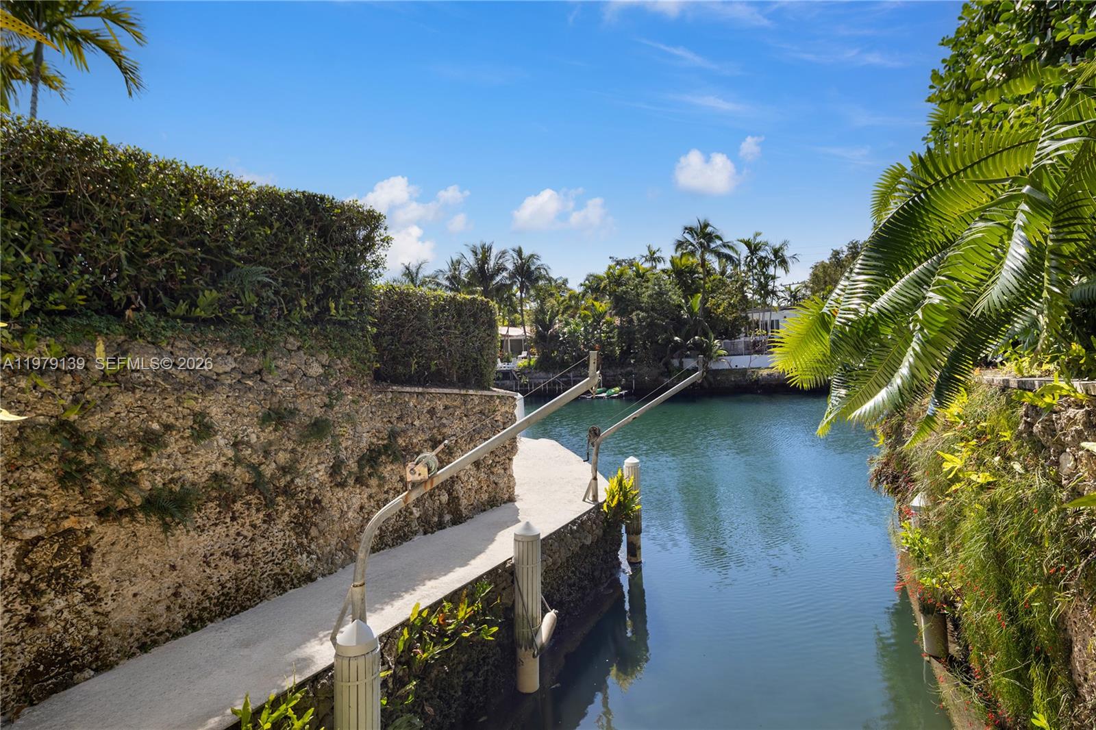 A classic Florida-style residence enjoys sweeping views across the widest bend of the canal, where tranquil water vistas and lush surroundings create a truly picturesque setting. Resting atop a natural bed of exposed coral rock along the dock, the home reflects the timeless character of South Florida's coastal architecture, gracefully positioned along 90' of waterfront on the Coral Gables Waterway. 3 bedrooms + den and 4 bathrooms, light-filled interiors are framed by expansive picture windows that invite the outdoors in, bathing the home in natural sunlight throughout the day. Painted concrete and wood floors lend a relaxed yet sophisticated coastal aesthetic, while a thoughtfully designer-curated interior creates polished, picture-perfect living. In 2015, the residence underwent a comprehensive renovation including updated plumbing, electrical, the enclosure of the garage to enhance the home's livable space. Roof installed within the past 3 years. For boating enthusiasts, the property features a rare grandfathered boat cutout and a dock with storage shed. This exceptional property offers a rare opportunity to experience classic Florida waterfront living with thoughtful modern updates in a serene, light-filled setting. Not located within a flood zone. As seen in LUXE Magazine.